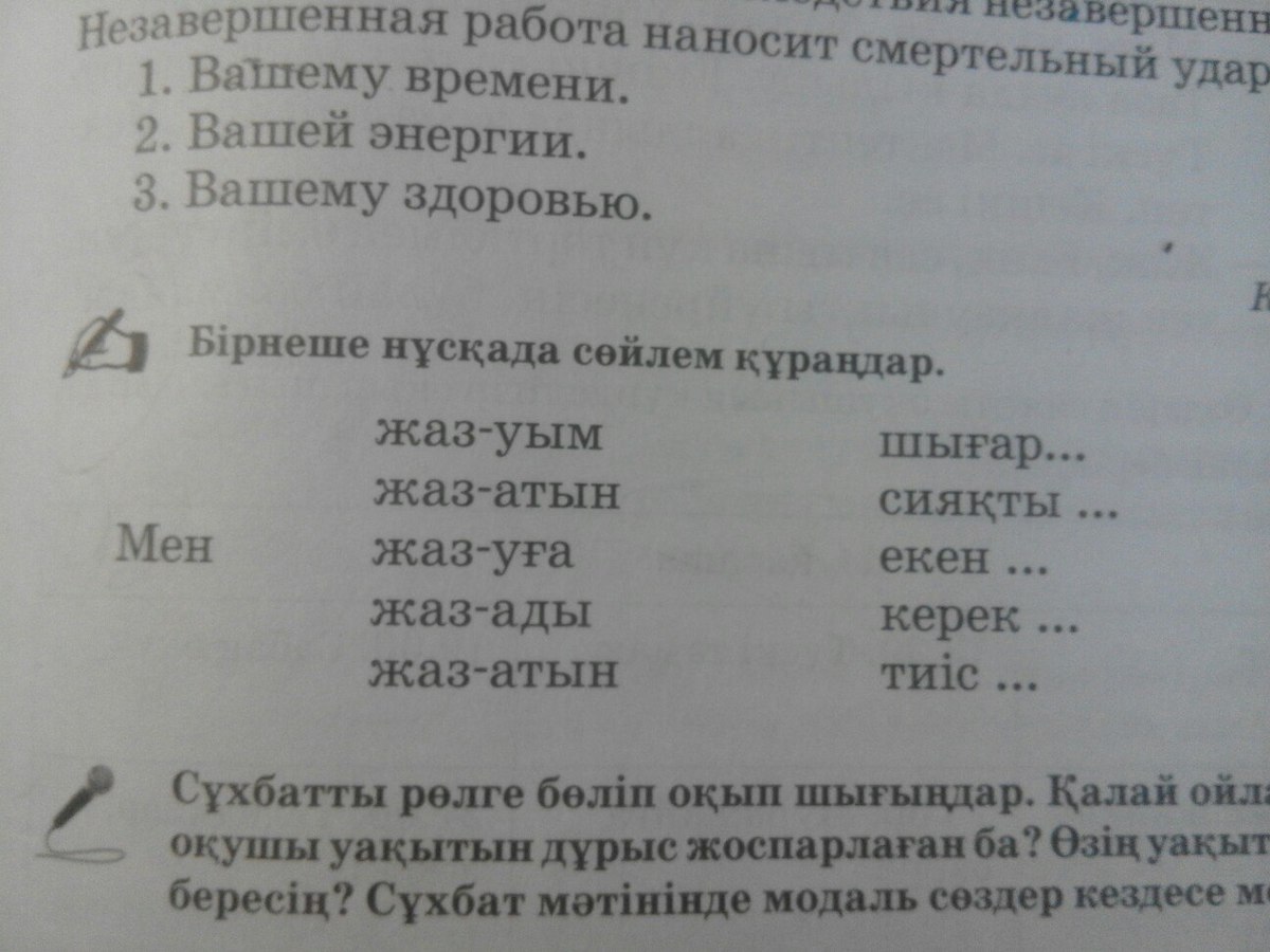 Бұл тақырыпты мен жазуым керек шығар. Мен жазатын сияқтымын. Мен жазуға үйренбеген екенмін. Менің міндетті түрде жазуым керек. Мен жазуға тиіспін.