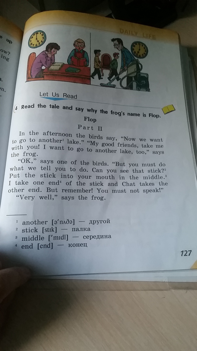 Во второй половине дня говорят птицы, "Теперь мы хотим пойти в другое озеро", "Мой хороший друг Возьми меня с собой. Я хочу пойти в другое озеро, тоже", говорит лягушка.