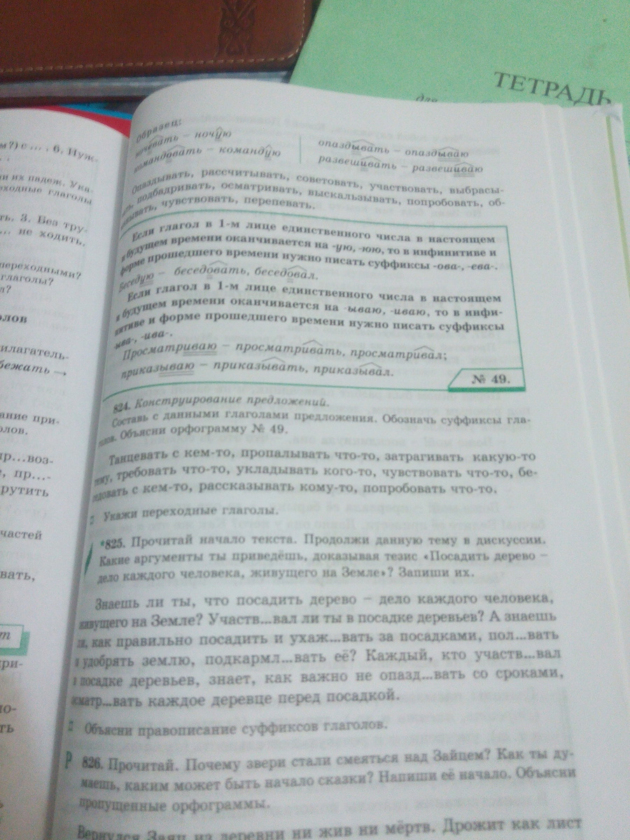 Упражнение 824. Составь с данными глаголами предложения. Обозначь суффиксы глаголов. Вот