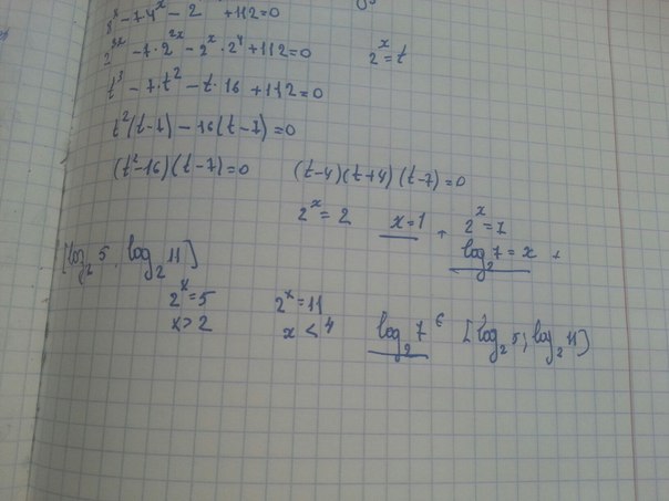 16*2ˣ +112=0.Пусть 2ˣ =t,тогда имеем:
