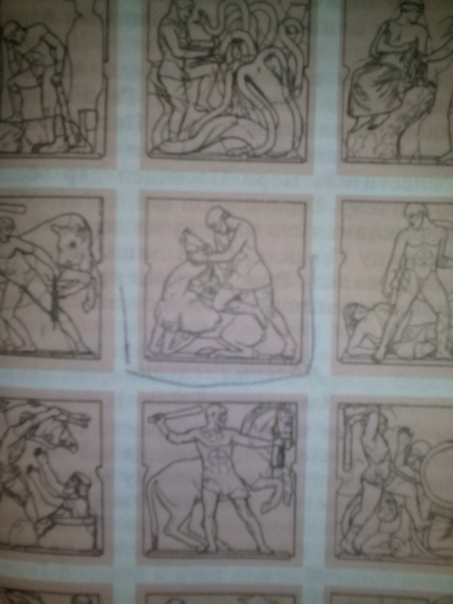 На картинке нарисована керинейская лань, которую укрощает Геракл. Это его третий подвиг.