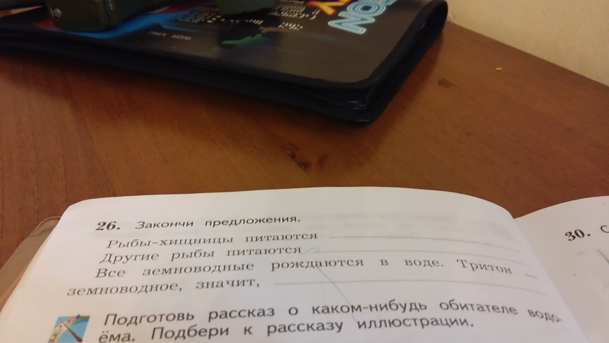 Рыбы-хищницы питаются мелкими рыбами. Другие рыбы питаются растит ельностью. Все земноводные рождаются в воде. Тритон-земноводное,значит,он тоже рождается в воде