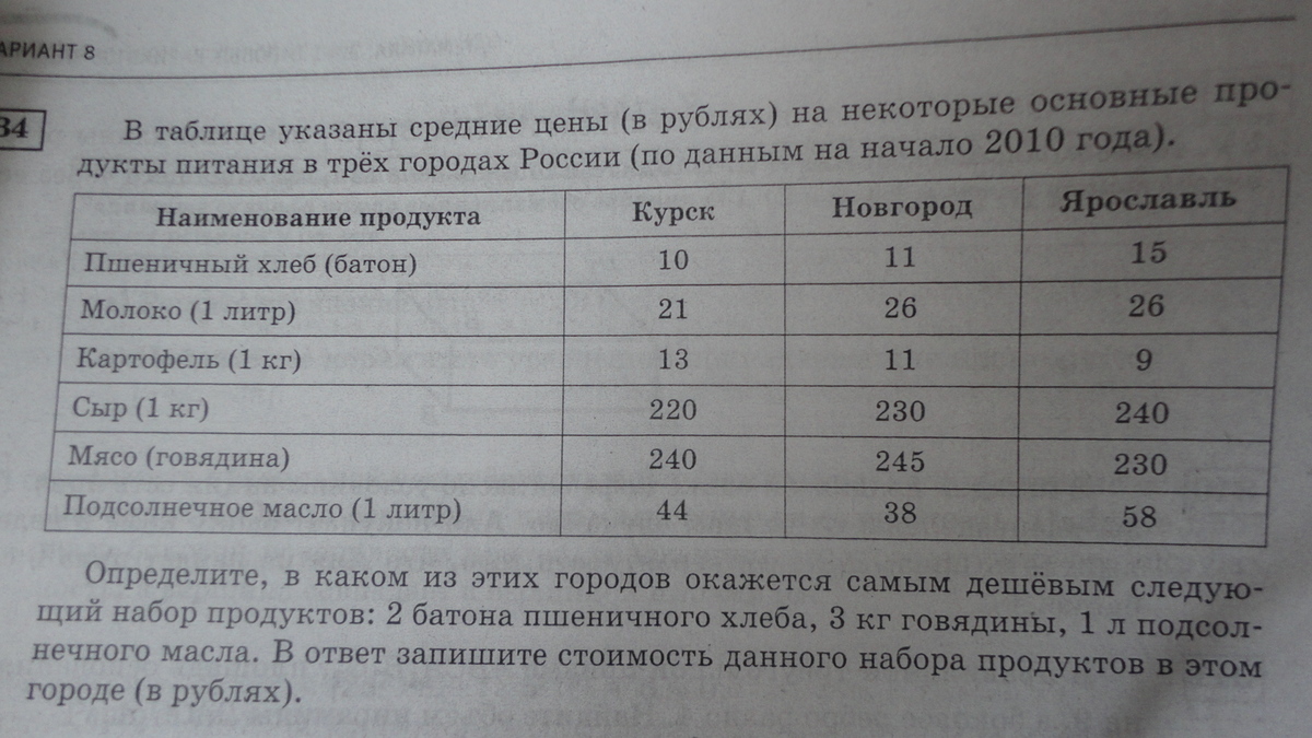 в таблице указаны средние цены в рублях, на некоторые основные продукты питание в трех городах россии. РЕШИТЕ ПОЖАЛУЙСТА