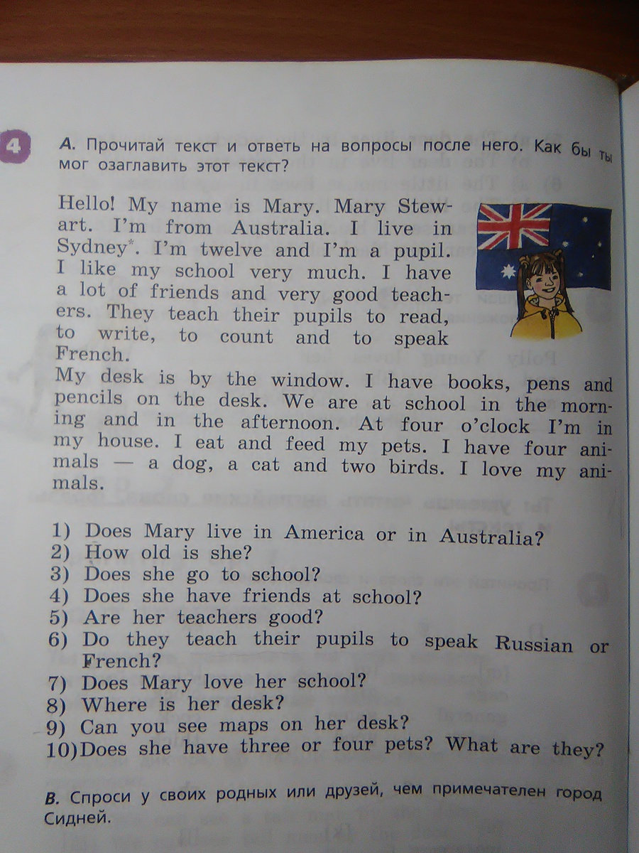 1. Mary lives in Australia.
