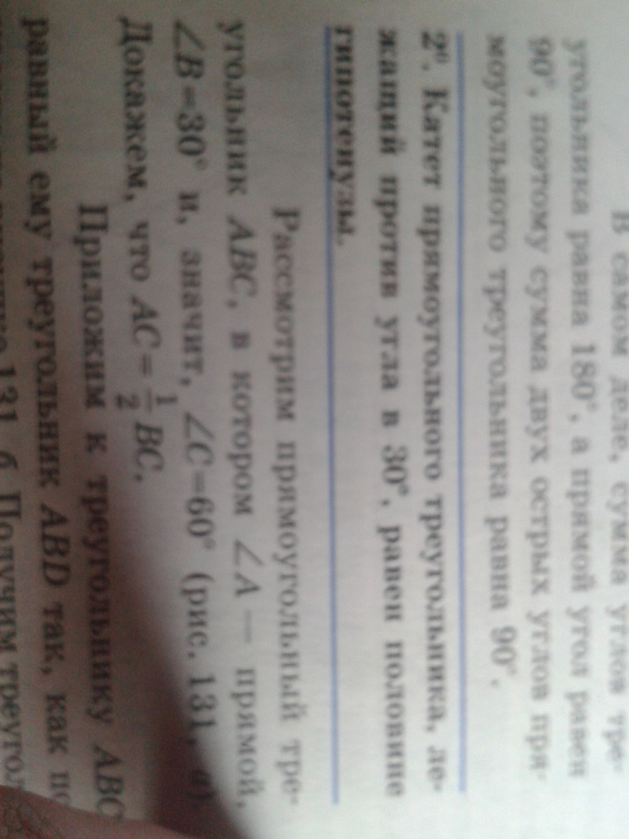 и обратная теорема<br />Если катет пряиоугольного треугольника равен половине гипотенузы , то угол лежащий против этого катета равен 30°