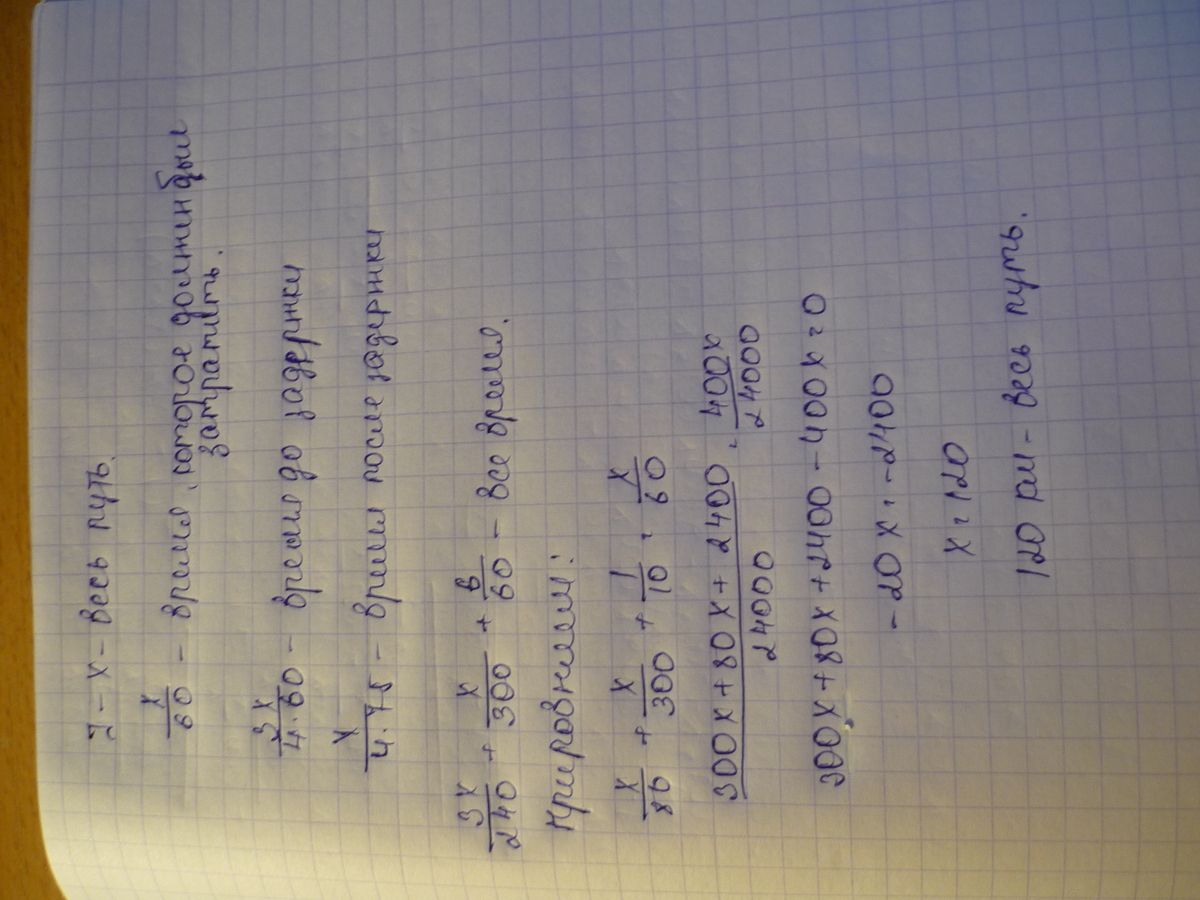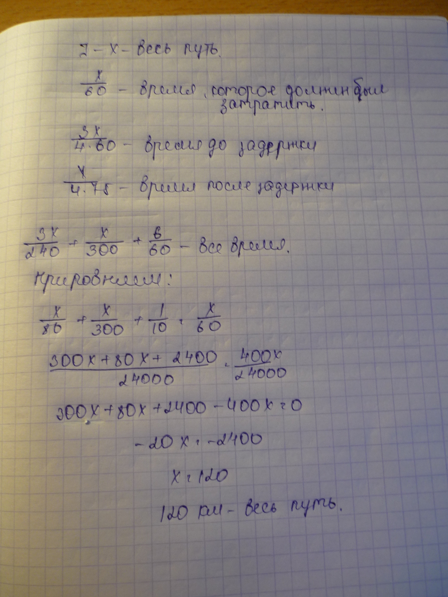 4. Поезд прошёл 3/4 пути со скоростью 60 км/ч, а затем был задержан на 6 минут. Чтобы прибыть в конечный пункт вовремя, оставшуюся часть пути поезд шёл со скоростью 75 км/ч. Найти путь , пройденный поездом. РЕШИТЕ СКОЛЬКО СМОЖЕТЕ!