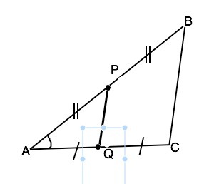 Рассмотрим ∆ АРQ и ∆ АВС. АВ:АР=АС:AQ=2. Угол А - общий.