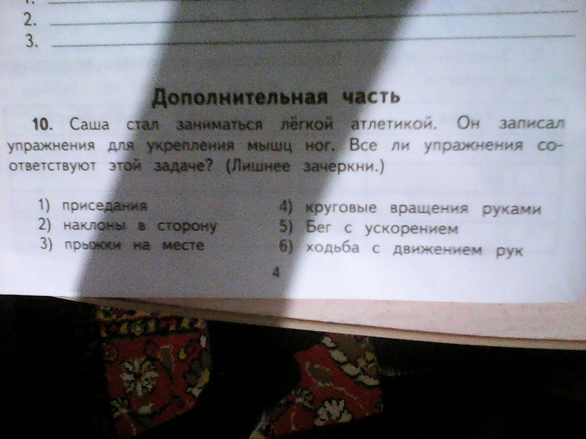 Зачеркнуть: наклоны в сторону, круговые движения руками, ходьба с движением рук