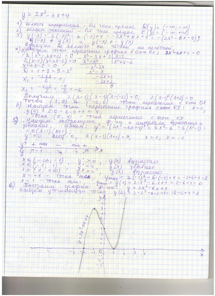 промежутки возрастания, убывания; нули функции, точки экстремума и так далее