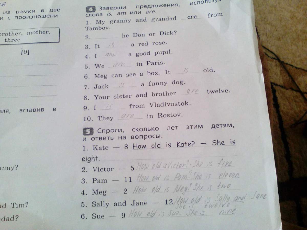 5. 2) He is five, 5) how old are Sally and Jane? They are 12, 8) how old are Don and Tess? They are 4, 9) He is 3