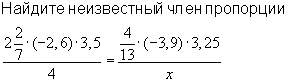 frac{2frac{2}{7}*(-2,6)*3,5}{4}=frac{frac{4}{13}*(-3,9)*3,25}{x}\\frac{frac{16}{7}*(-frac{13}{5})*frac{7}{2}}{4}=frac{frac{4}{13}*(-frac{39}{10})*frac{13}{4}}{x}\\frac{frac{16*(-13)*7}{7*5*2}}{4}=frac{frac{4*(-39)*13}{13*10*4}}{x}\\frac{frac{-104}{5}}{4}=frac{frac{-39}{10}}{x}\\frac{-104}{5*4}=frac{-39}{10*x}\\-104*10x=5*4*(-39)\-1040x=-780\x=frac{-780}{-1040}\\x=frac{3}{4}ilix=0,75