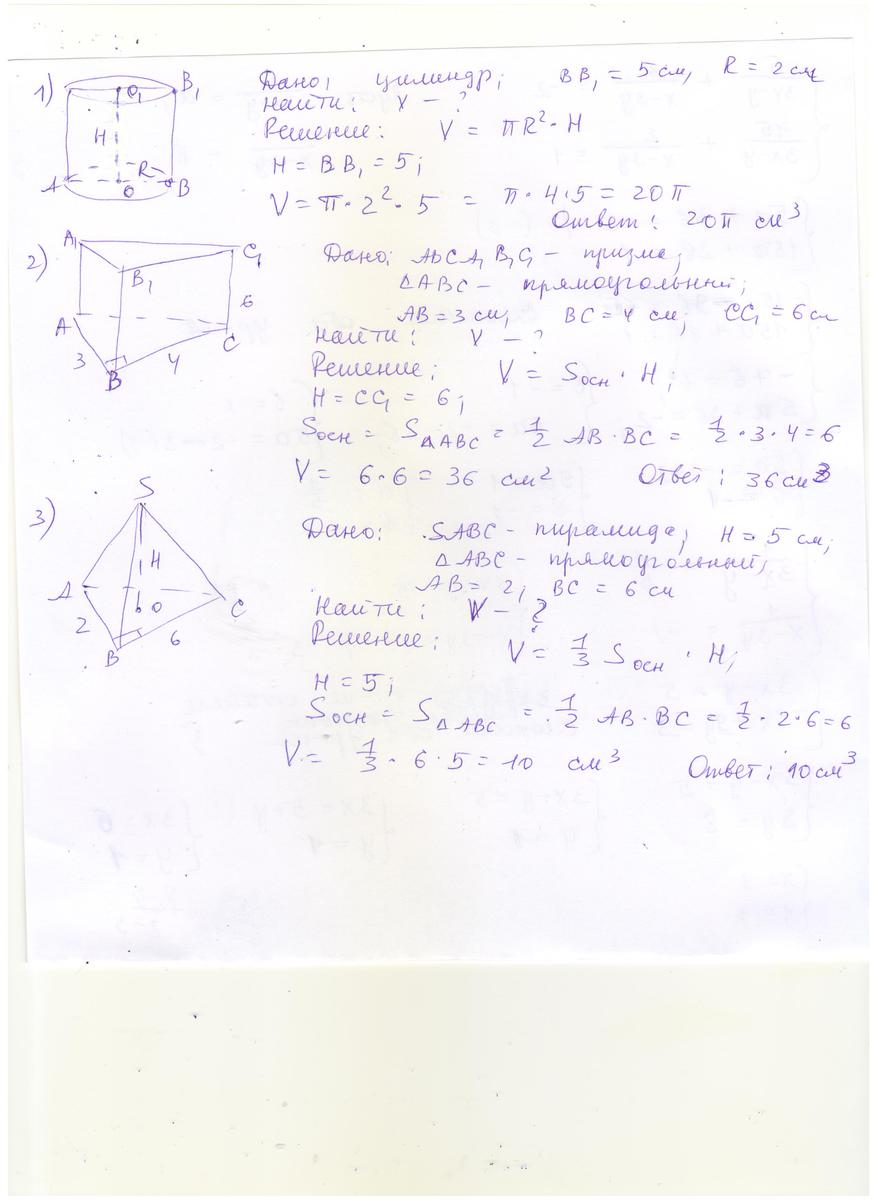 1. Вычислите обьем цилиндра, образующая которая ровна 5 см а радиус основания 2 см