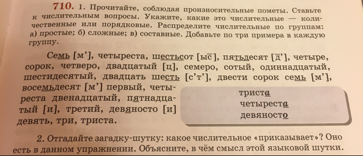 Двадцать шесть,двести сорок семь,восемьдесят первый,четыреста двенадцатый,девяносто девять.