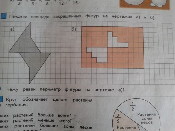 найди площади закрашенных фигур на чертежах а) б)