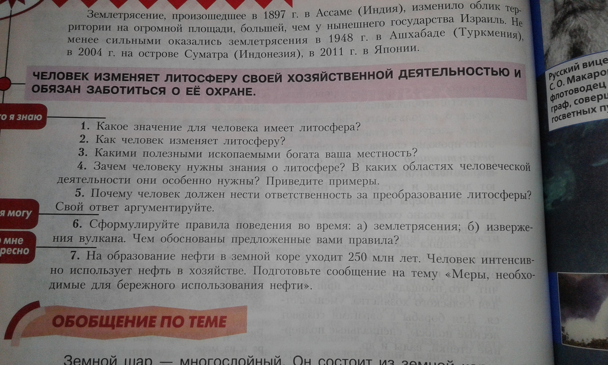1.Литосфера для человека это среда обитаня - имеет огромное значение.Человеквлияет на литосферу изменяя её ландшавт что может повлечь необратиме процессы такие как изменение русла рек .
