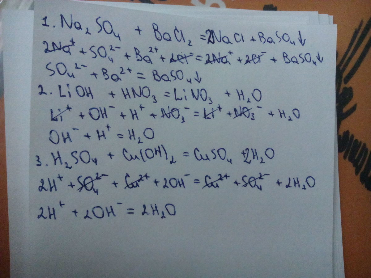 Расставьте коэффициенты в уровнениях реакций и напишите полные и сокращённые ионные уравнения. а) Na2SO4+BaCi2=NaCi+BaSO4 б) LiOH+HNa3=LiNo3+H2O в) H2SO4+Cu(OH)2=CuSO4+H2O