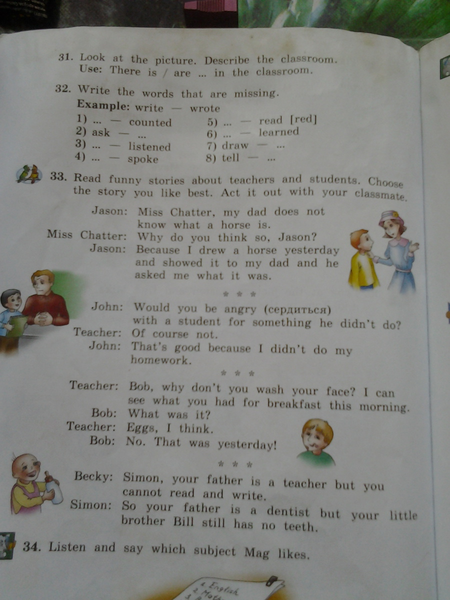 В.: Саймон, твой папа учитель, а ты не можешь ни читать, ни писать.