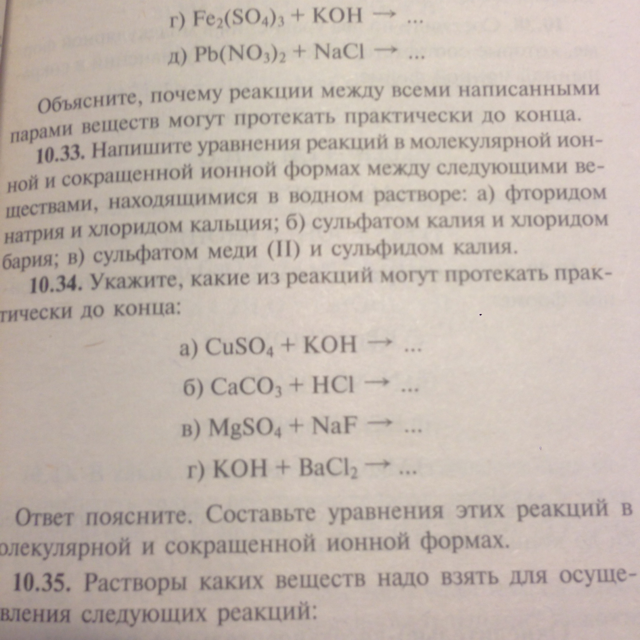 г) 2KOH+BaCl2=Ba (OH)2+2KCl - реакция идет не до конца