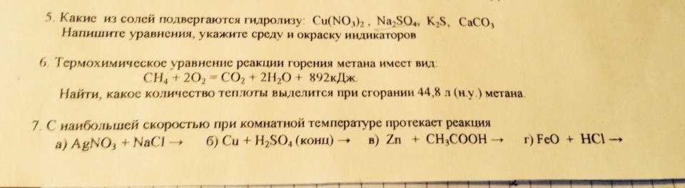 5)Сu(NO3)2+2H2O=Cu(OH)2+2HNO3 - кислая среда