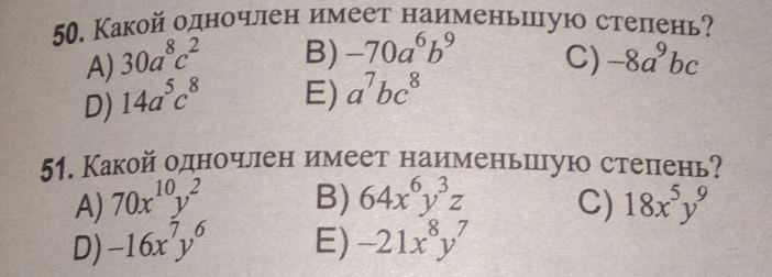 51В) 64x^6y^3z-степень равна 10-наименьшая