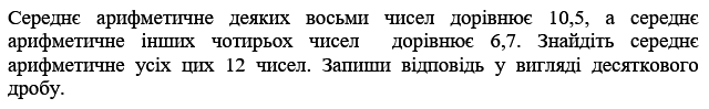 Так как среднее арифметическое это сумма всех чисел деленное на их количество, то сумма 8 чисел равна 10,5*8=84, второй четверки соответственно 4*6,7=26.8
