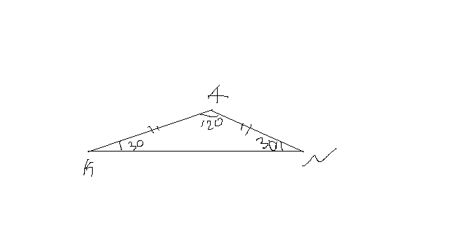 ∠K=∠N=(180°-∠A):2=(180°-120°):2=30°