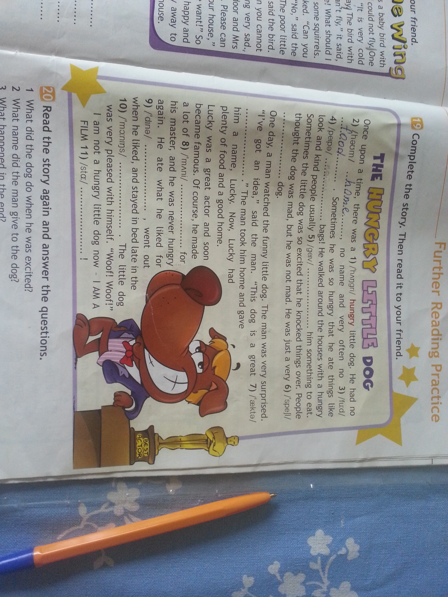 Ответ в фото. Вставленные слова: 1)hungry; 2)home; 3)food; 4)paper; 5)give; 6)special; 7)actor; 8)many; 9)dinner; 10)mornings; 11)stay.