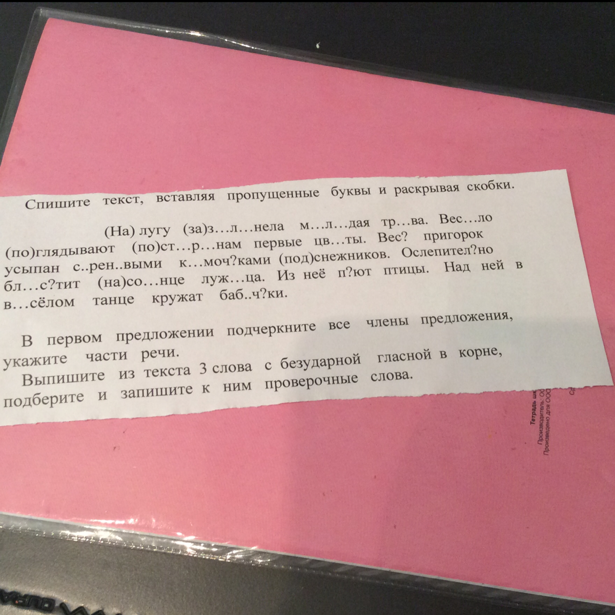 На лугу зазеленела молодая трава.Весело поглядывают по сторонам первые цветы.Весь пригорок усыпан сиреневыми комочками подснежников.Ослепительно блестит на солнце лужица.Из неё пьют птицы.Над ней в весёлом танце кружат бабочки.