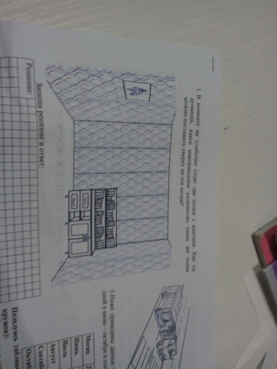 в комнате на тумбочке стоят 2 полки с книгами. как ты думаешь,какое максимальное количество таких же полок можно поставить сверху на эти полки?