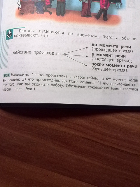 глаголы ( пишу наст., сидят наст., шумят наст., сидим наст., не разговариваем наст., будут обсуждают буд.)