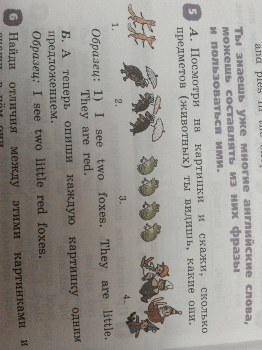 b)I see four little green frogs.