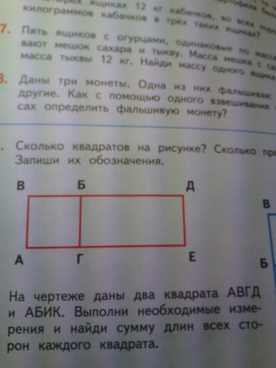 Красных квадратов 1: АВБГ; Прямоугольников 2:ГБДЕ;АВДЕ.
