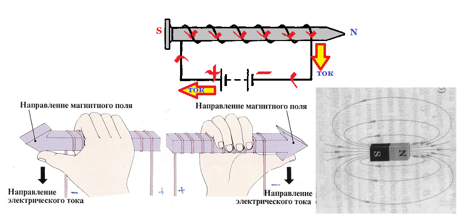 Какой полюс будет иметь заостренные конец гвоздя если по наметанный вокруг него проволоке пропустить ток от аккумулятора