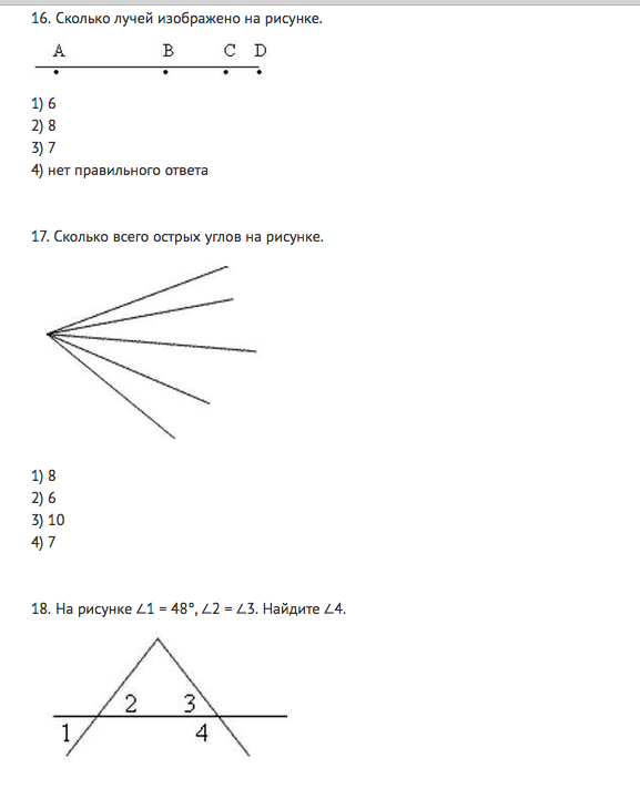раз угол 1 =48, значит смежный с ним угол (пусть будет ∠α) равен 180-48=132, ∠2=180-∠α⇒∠2=180-132=48 ∠3 и ∠4 смежные, значит ∠4=180-∠3, а раз ∠3=∠2, то ∠4=180-48=132°