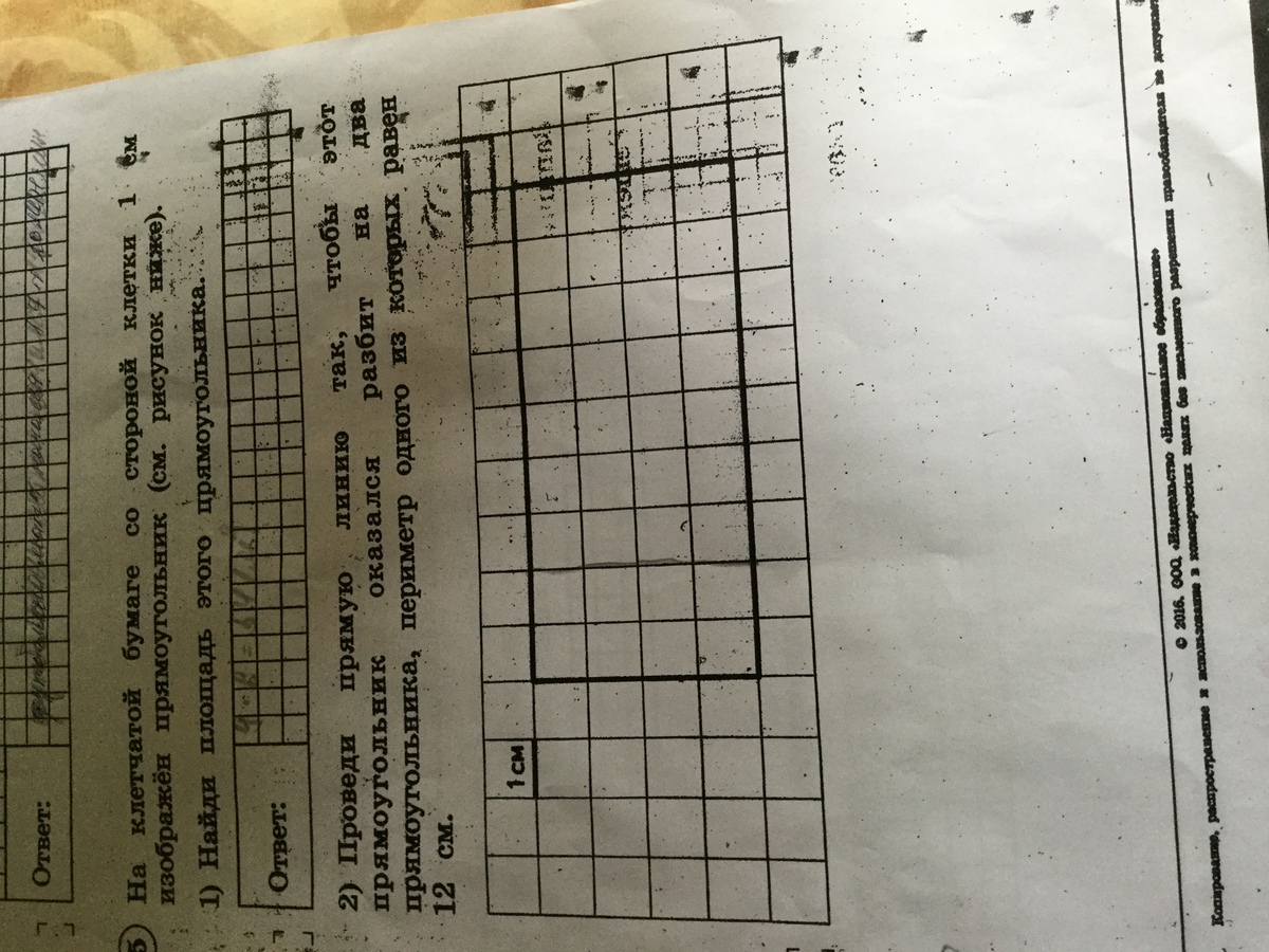 вниз 4 клетки и 2 клетки вправо, проводишь линию. Получился прямоугольник с периметром 12 см.