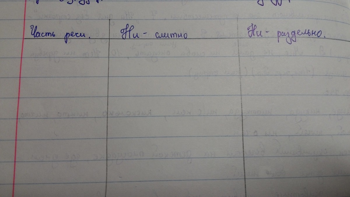 Помогите пожалуйста заполнить таблицу. Срочно!!! В колонках ни- слитно и раздельно нужно написать правила, а не примеры.