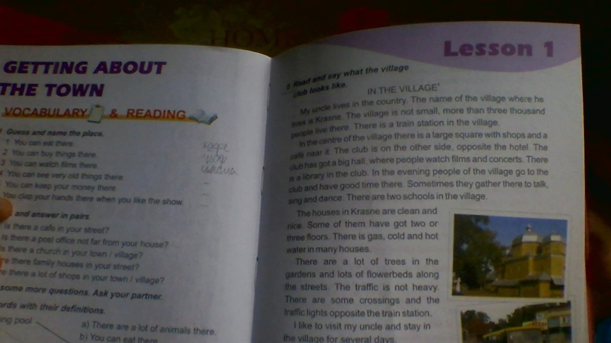 Мій дядько мешкає в селі. Зветься село Красне. Селище це не мале, тут живе понад тисячу людей. В селі є залізниця.