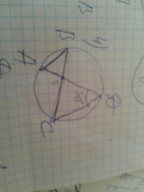 ∠ABC=30°, т.к. это вписанные углы и опираются на одну и ту же дугу. Если вписанные углы опираются на одну и ту же дугу, то они равны.