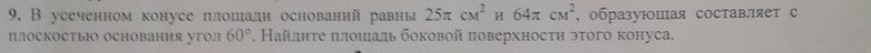 Sбок=πL*(R+r)=3π*(8+5)=39πсм²
