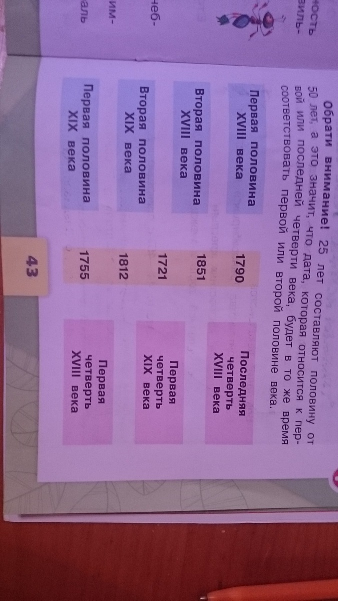 первая половина икс пять три века 1721,вторая половина икс пять три века1755,вторая половина икс один икс века 1851,первая половина икс один икс века 1812,последняя четверть икс пять три века 1790,первая четверть икс один икс века1812,первая четверть икс пять три века1721.
