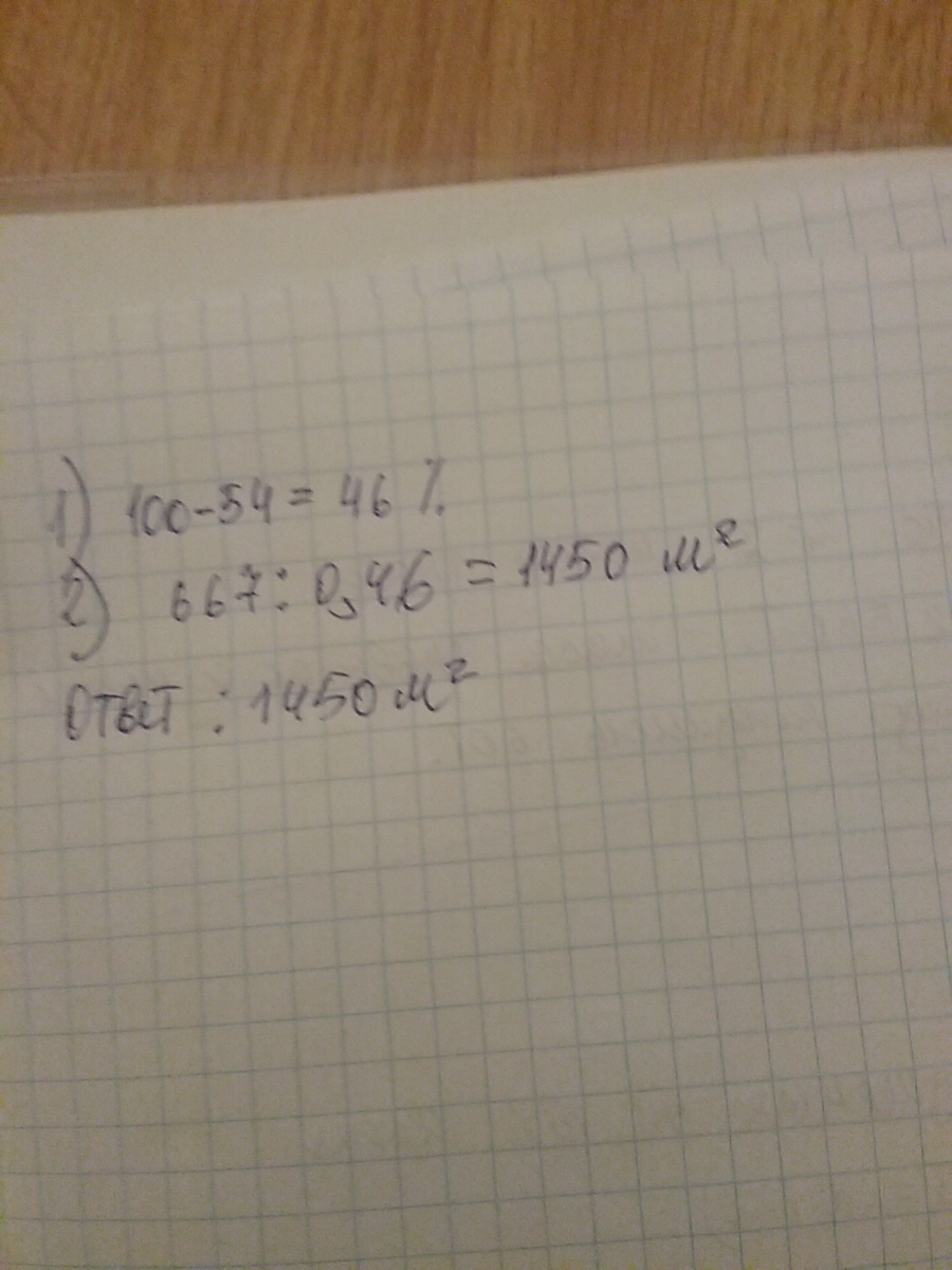 за первую неделю Было отремонтировано 54% площади дорожного покрытия А за вторую остальные 667 квадратных метров Какова площадь отремонтированного дорожного покрытия