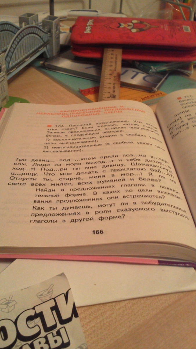 В задании написано: Прочитай предложения. Кто автор этих строк? Если можешь, назови сказки. Запиши предложения, вставляя пропущенные буквы, в следующем порядке: 1) восклицательные (рядом в скобках укажи цель высказывания); 2) невосклицательные (в скобках укажи цель высказывания).