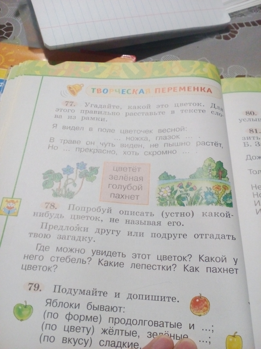 1 -зелёная 2- голубой 3-пахнет 4 цветёт