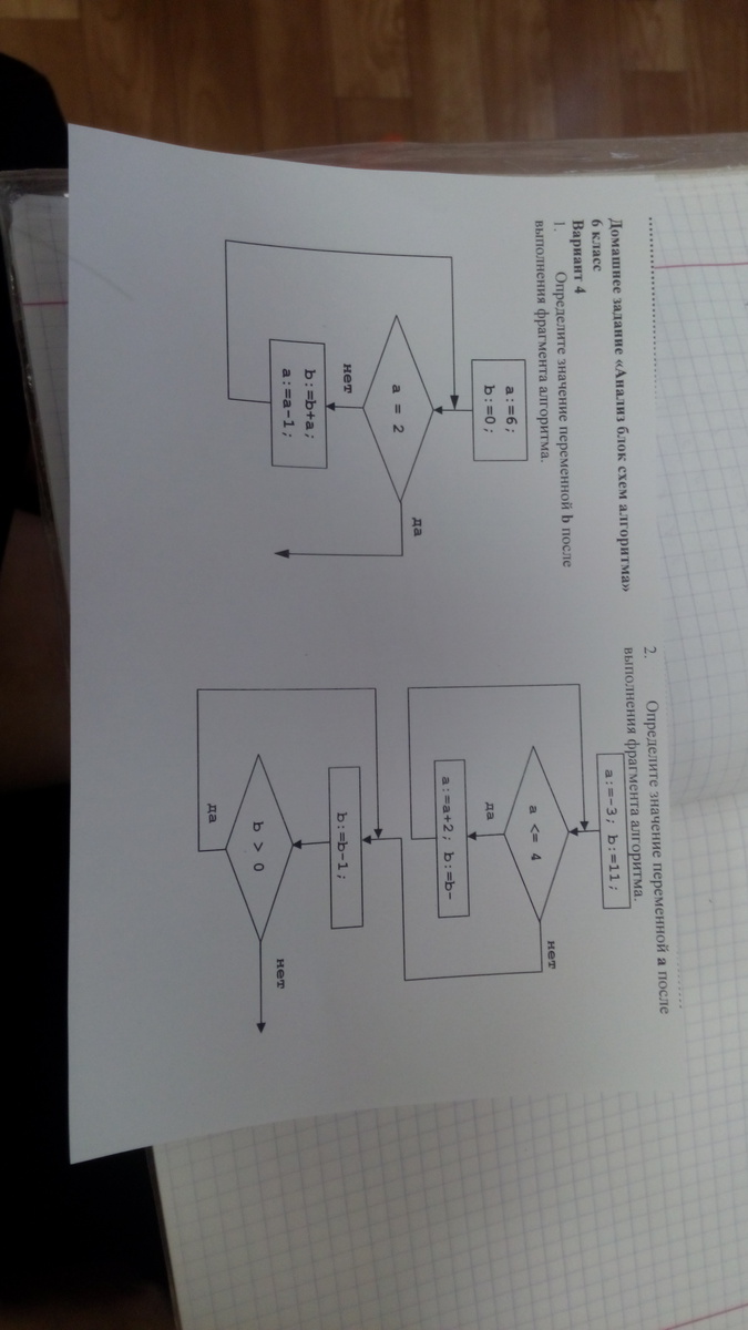 0+6 и а=5; 6+5 и а=4; 11+4 и а=3; 15+3 и а =2 - цикл заканчивается, имеем b=18