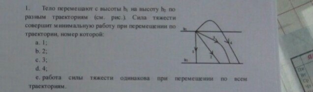 При перемещение по какой траектории сила тяжести совершит минимальную работу?