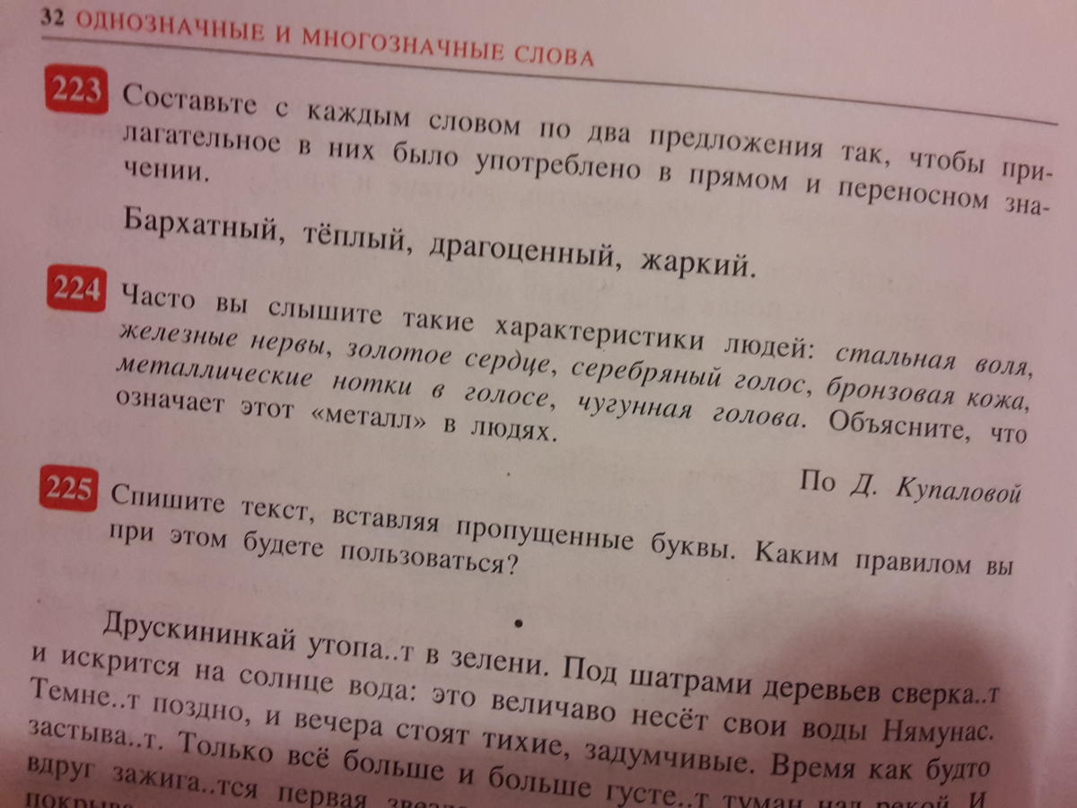 Бархатный кафтан у Ивана. Бархатный сезон на море начинается в сентябре. Теплый нос у кота говорит о его болезни. Теплым взглядом провожала меня мама из окна. Драгоценный камень стоит дорого. Мой драгоценный талисман- это старый плюшевый медведь. В жаркий день хорошо бы искупаться. Жаркий день выдался на работе, столько дел, что ни разу не присел.