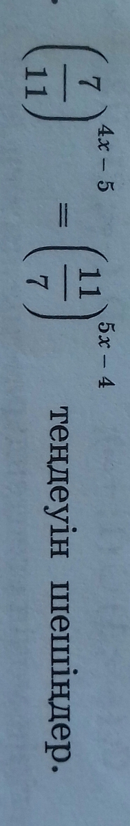 (11/7)^-4x+5 = (11/7)^ 5x-4