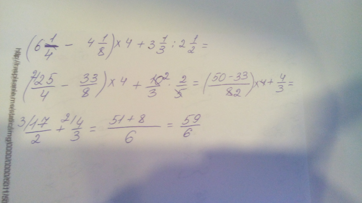 Выполни действие( 6целых одна четвёртых минус 4 целых одна восьмая) × 4 +3целых одна третья ÷ 2 целых одна вторая. Плиз прошу