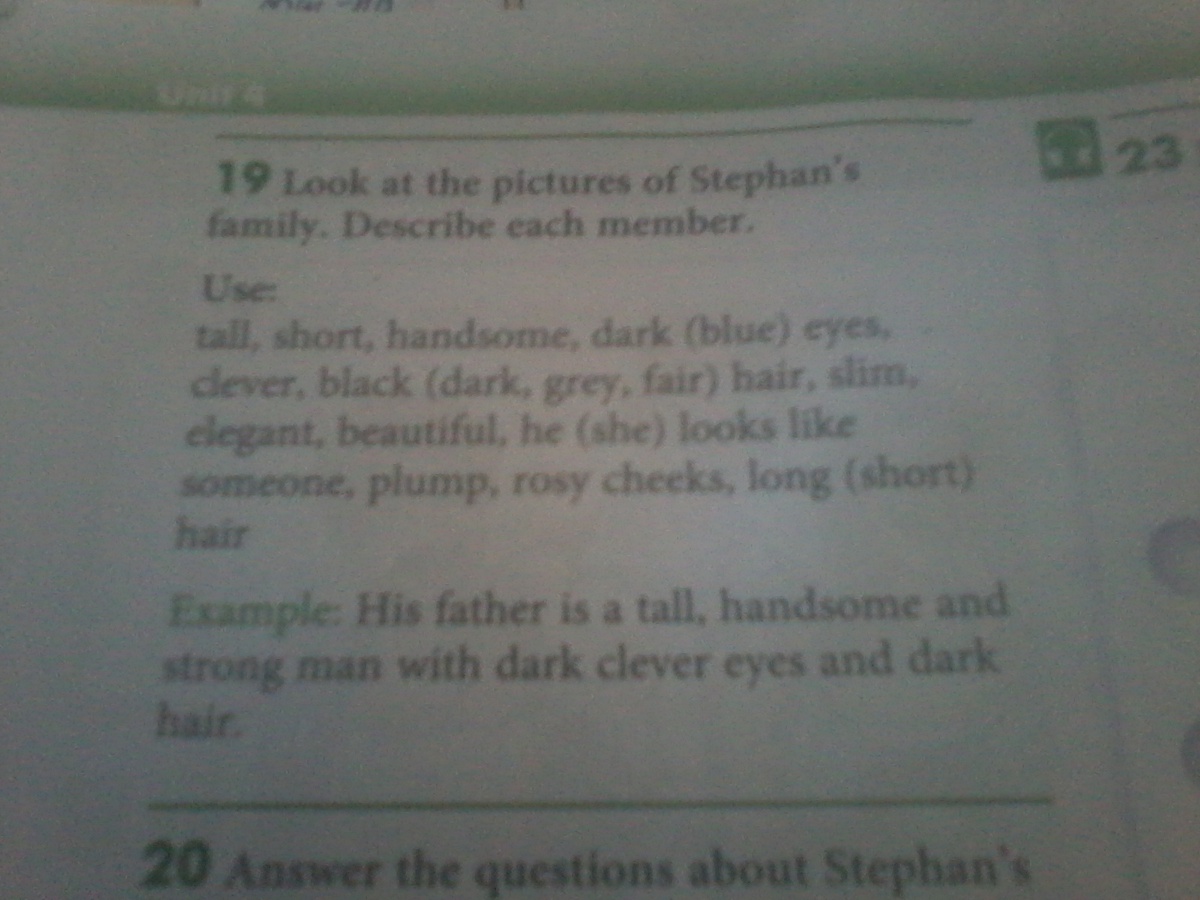 нужно посмотреть на картинку и описать членов семьи Стефана