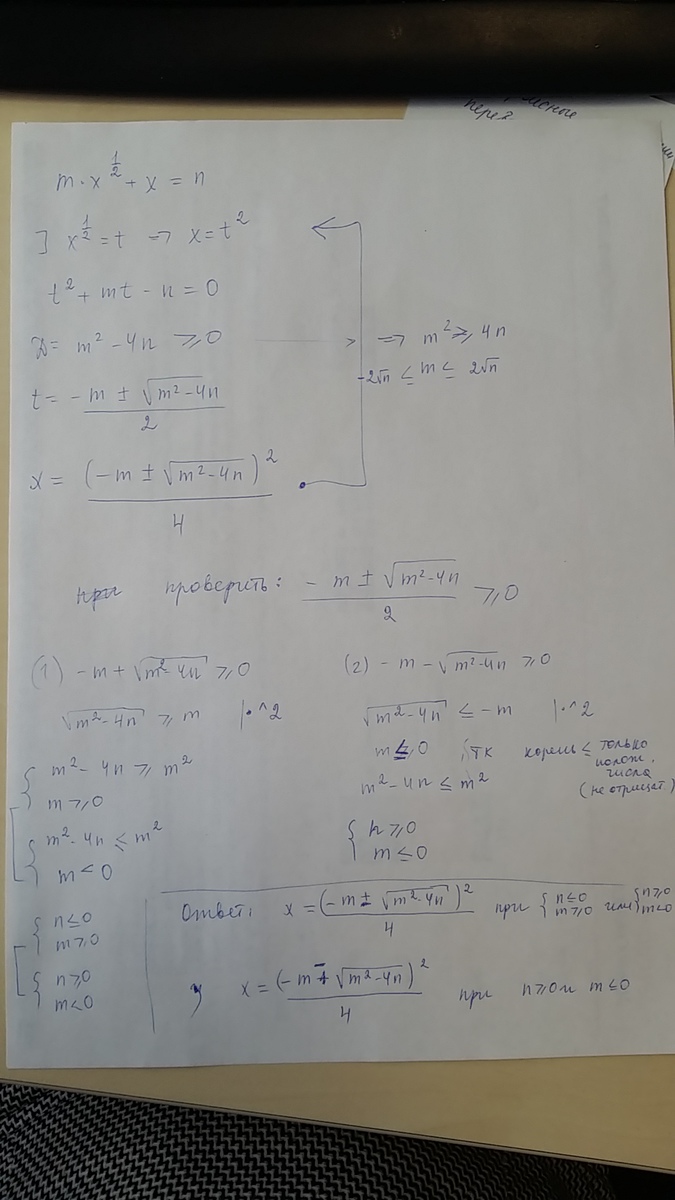 ответ подправь: (1) корень: при n больше и равно 0 , m меньше -2 корней из n